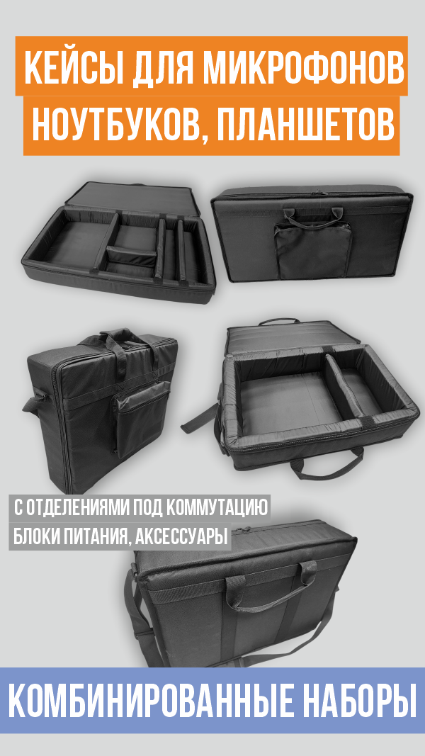 Мы разрабатываеи и производим сумки, чехлы, кейсы для event-индустрии, музыкального и сценического оборудования, музыкальных инструментов, в т.ч. по индивидуальным размерам.
