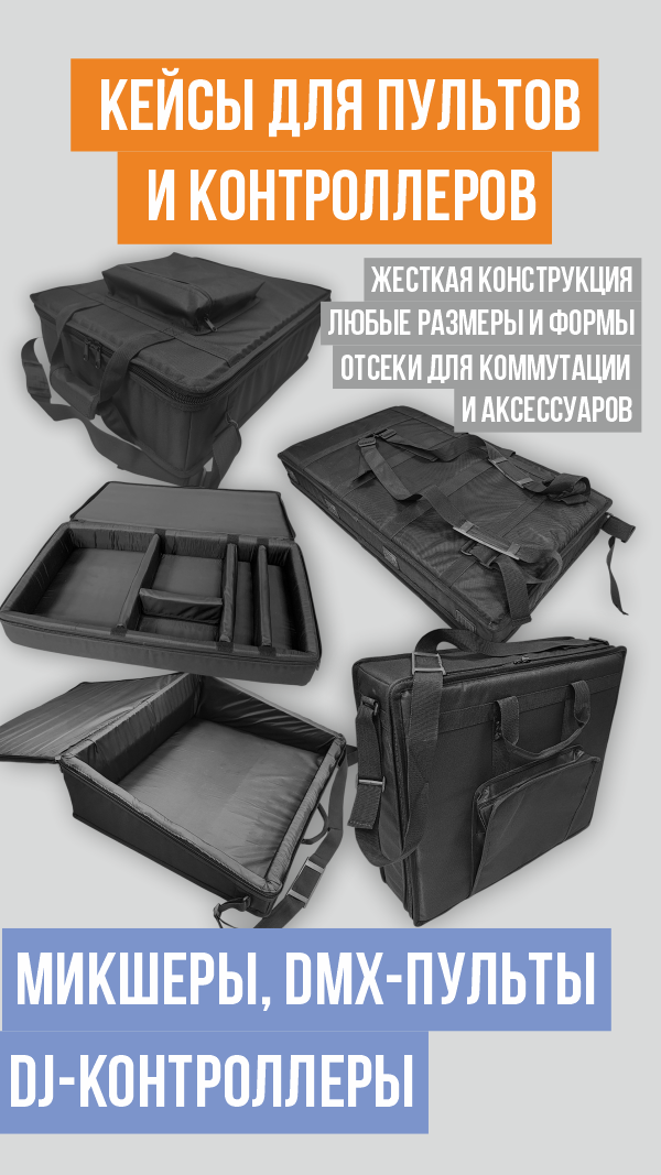 Мы разрабатываеи и производим сумки, чехлы, кейсы для event-индустрии, музыкального и сценического оборудования, музыкальных инструментов, в т.ч. по индивидуальным размерам.